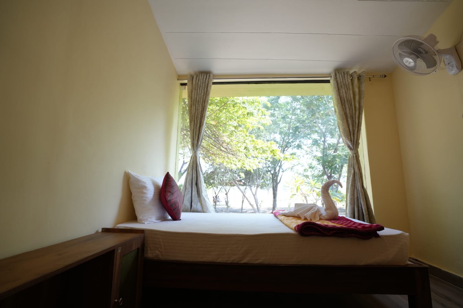 The Deluxe Cottage for single occupancy is designed for guests who want privacy, comfort, and a close connection with nature. Each cottage features a spacious air-conditioned bedroom, a well-appointed luxury bathroom, and a private outdoor sitting area. Surrounded by lush greenery, it offers a calm setting to unwind after a jungle safari or enjoy a quiet evening with sunset views and forest sounds.